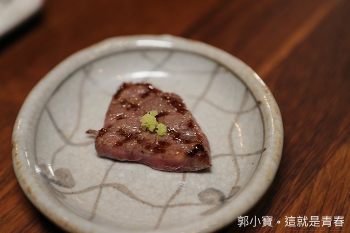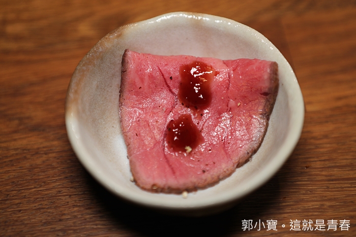 這塊牛肉是老闆烤好切片端上來的,看這熟度一整個讓我口水直流,忍不住趕緊放到嘴理,豐沛的肉汁噴發加上熟度恰恰好,肉質軟摁,真的非常迷人。 |