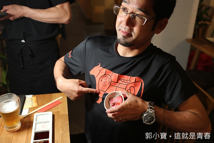 我喜歡這家店的老闆切的厚度,不會太薄導致於失去口感,有些和牛切的太薄,入口都只剩下和年的油汁鮮甜但同時也失去了肉感,老闆切的厚度對我來說最剛好。 |