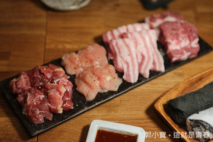 我們因為有訂位,所以老闆早早就準備了我們的位子,連醬料都放好了,醬汁從左至右分別為烤肉醬、味增醬油、日式醬油、玫瑰鹽。 |