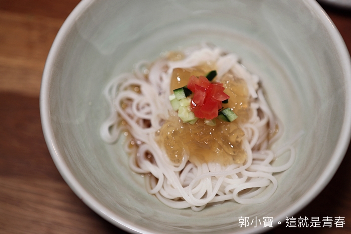 本來菜單提供的是茶泡飯,但是老闆覺得天氣較熱,幫我們換成了冷麵。 |