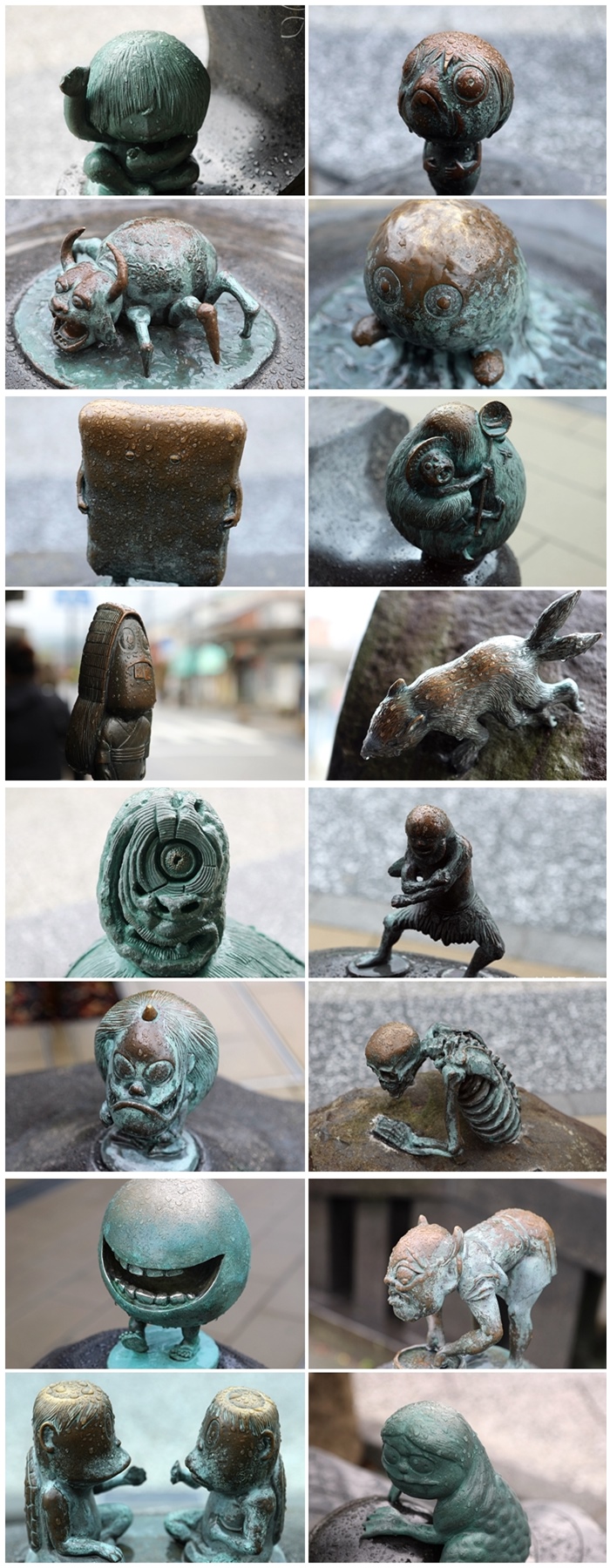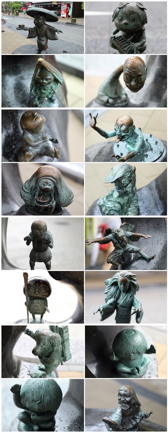 水木茂大道沿路上都有鬼太郎漫畫裡面出現過的妖怪,每一個都是我的兒時回憶,有些還記得有些卻忘記了,比較少見的妖怪也都會出現在這裡,這邊並不是我平常熟悉的鬼婆婆、鼠男、貓女等妖怪,但是依稀都記得些許這些妖怪的模樣。 |