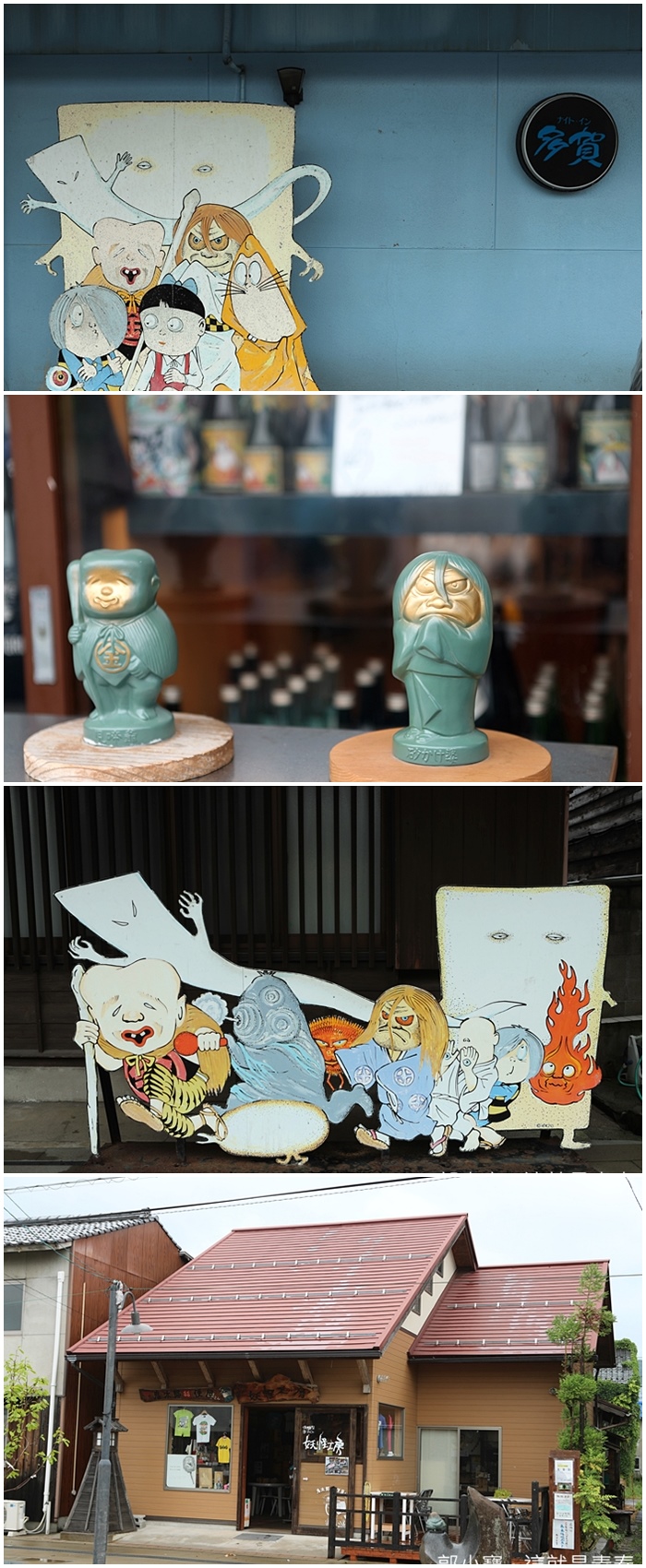 一進入水木茂大道就可以看到每家商店都脫離不了妖怪跟鬼太郎,滿滿鬼太郎的主題特色讓人目不轉睛,只可惜那時候的商店都還沒開門,無法探查幹多的主題商品。 |