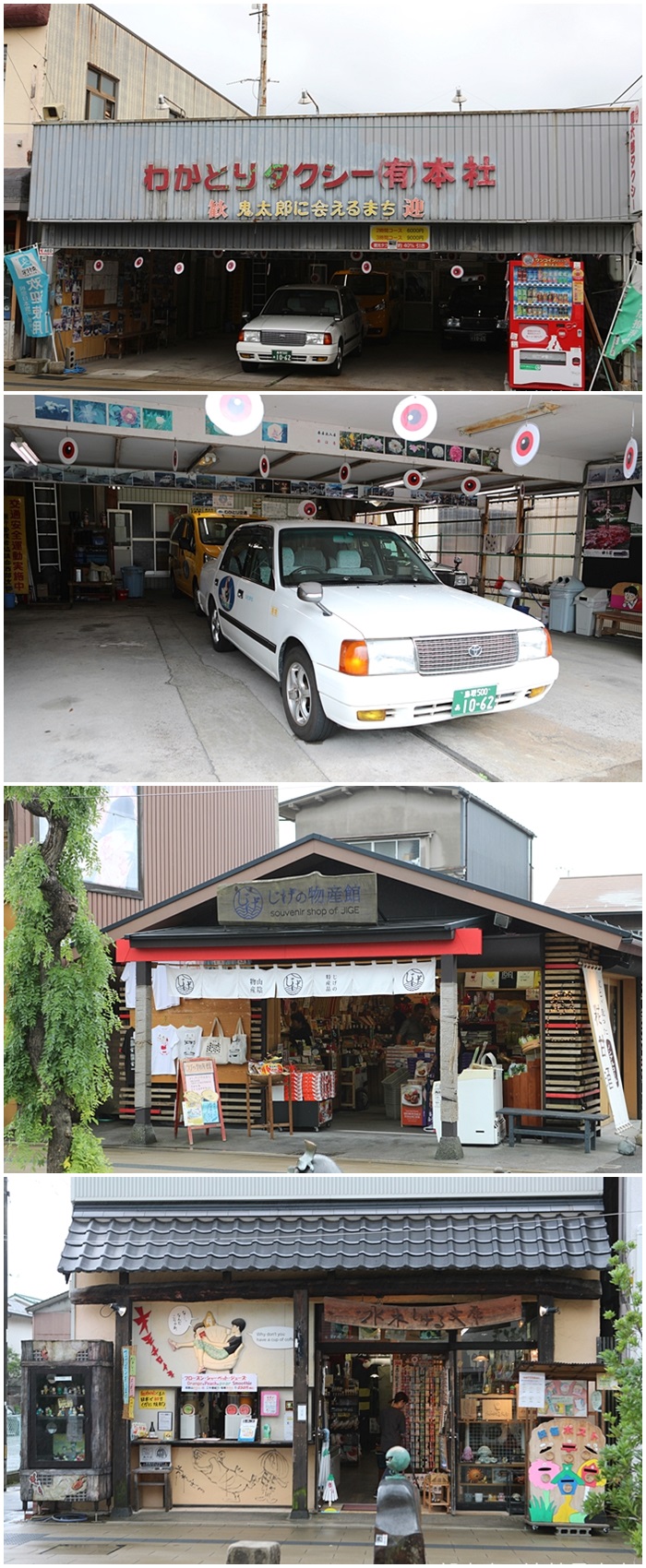 連計程車都會佈置鬼太郎的特色裝置,每家獨立商店都也很有特色,老房子、新房子,通通都是鬼太郎主題,雖然老房子佈置起來的氛圍比較有感覺,但是水木茂大道真的很有趣,也很好逛。 |