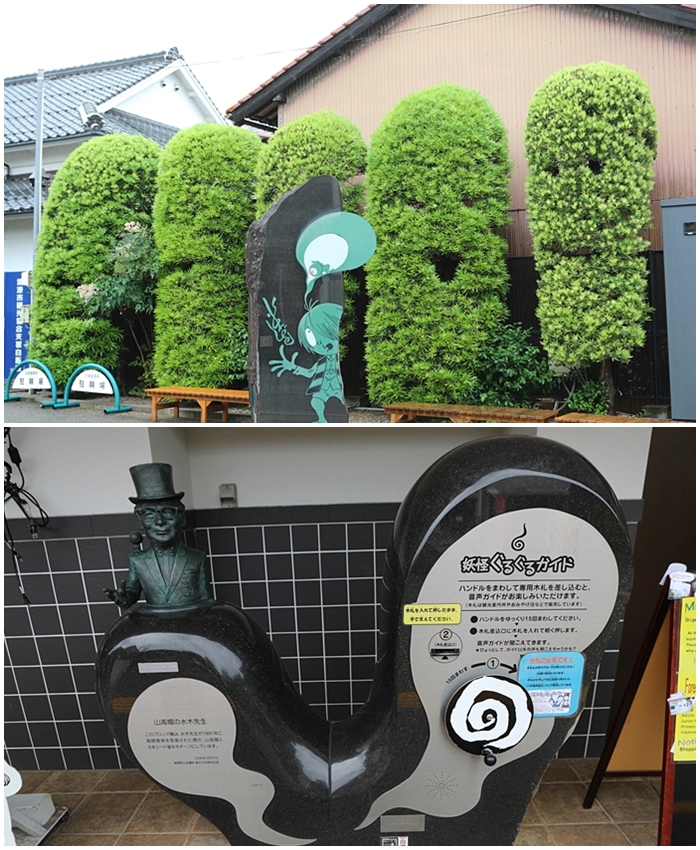 水木茂大道也被俗稱妖怪街,這邊也可以算是鬼太郎的主題商圈了,水木茂老師把鬼太郎漫畫無償給這邊的商店使用,所以大家也很認真地打造出水木茂形象的商圈。 |