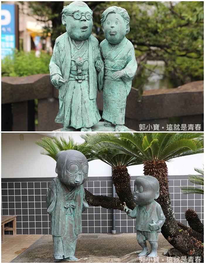 最重要的銅像當然就是水木茂老師跟他的妻子,謝謝水木茂老師帶給我的童年回憶,還有啟發水木茂大師畫鬼怪系列漫畫的鬼婆婆跟小時候的水木茂老師,這兩組銅像都是水木茂老師本人的銅像。
