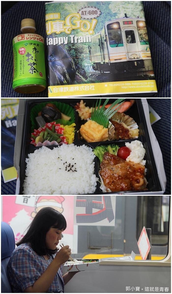 看完車廂後接近中午時分,就是特製鐵道便當暢場的時候了,有別於日本一般的冷便當,會津鐵道知道台灣人喜歡吃熱食,所以拿到便當的時候還是熱呼呼的,少數我在日本吃到的便當是熱的,對我個人來說便當還是要熱的比較好吃阿XDDDD