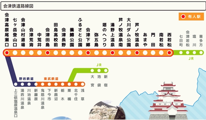 根據我跑福島大概10次左右的經驗,基本上都是以會津若松為中心點四處擴散為主,所以鬼怒川線直上會津鐵道到達會津若松最方便。 |