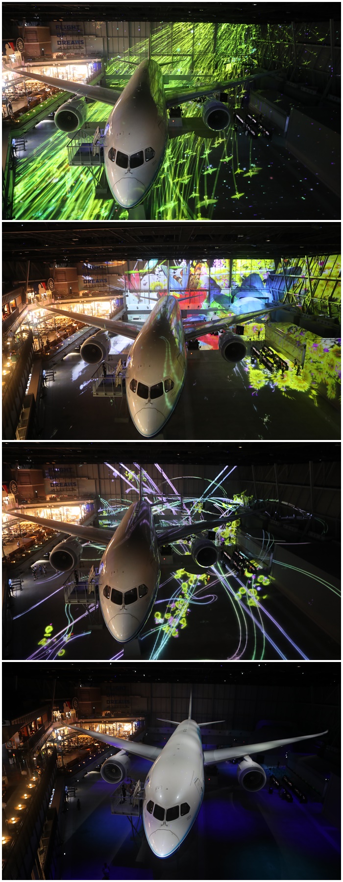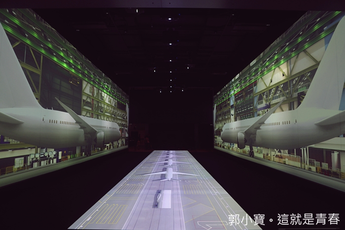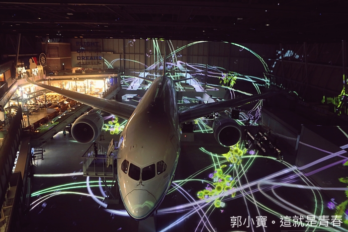館內最期待的就是精心打造的光雕秀,搭配波音客機彷彿就像飛在天空一般,光雕秀每隔一段時間就會演出,需依序排隊爬上高層的樓梯才可以欣賞到這美麗的光雕秀。 |