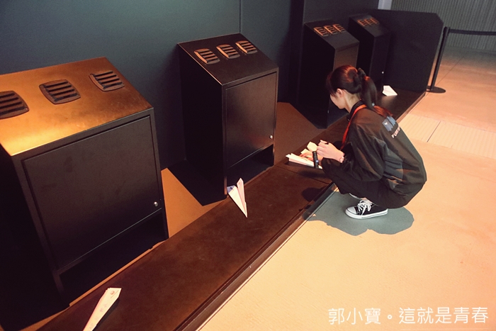 即使非不了太長的距離,底下的輸送帶會把紙飛機運送到最後,後方有工作人員幫大家整理。 |