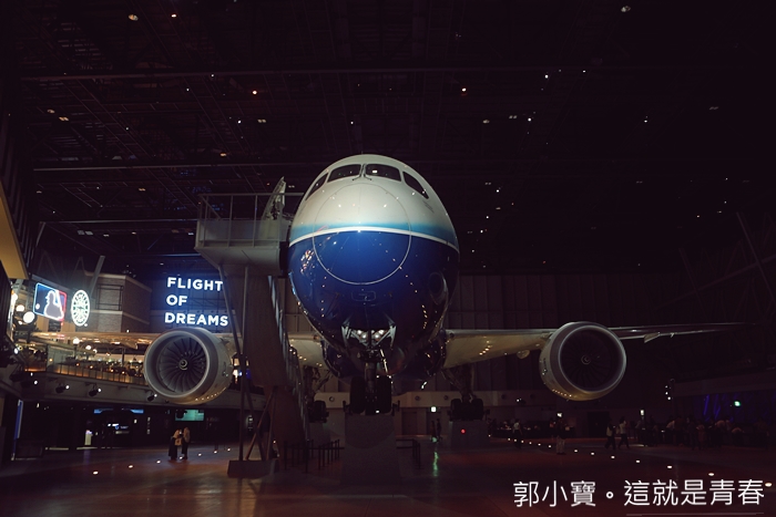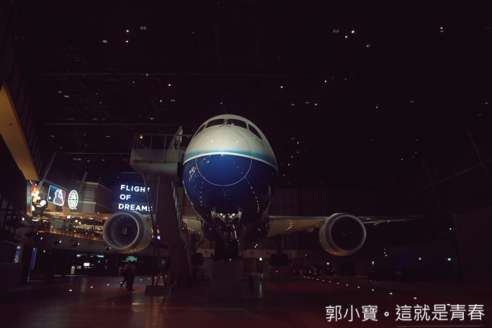 沿著步道直接進到館內非常方便,FLIGHT OF DREAMS航空樂園除了有夢幻的波音夢幻客機以外還有很多互動館跟光雕秀,加上二樓的餐飲空間打造成西雅圖的街景真的非常華麗,所以來這邊真的是好吃好玩一整天。