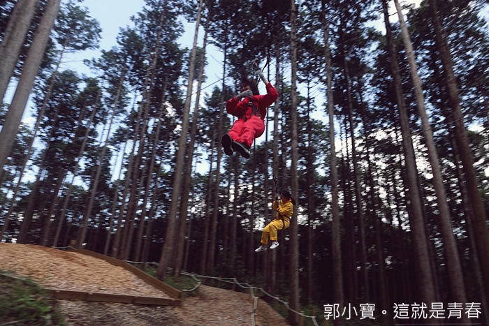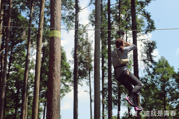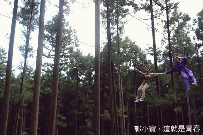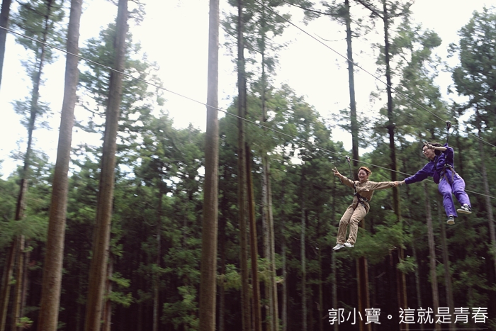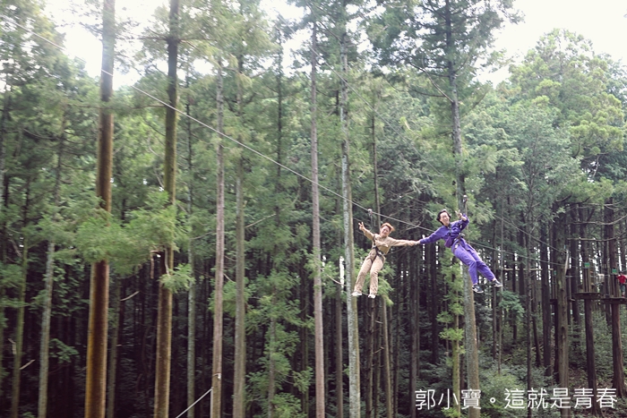 其實我個人最愛的還是高空滑索,從這邊直接滑過另一邊,可以享受快速滑動的刺激感,還有迎面而來的涼風,第一關到第四關每一關最後都有這樣的飛行滑索。 |