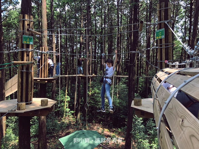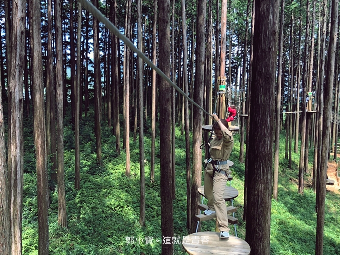 「Forest Adventure」源自於法國,真的滿讓我驚訝的,本來是用作企業研修讓企業員工提升專注力,後來因為太好玩太受歡迎而變成開始廣泛設置,現在全球已經有超過200個據點。「Forest Adventure湯之山」是2019年3月16日才正式開幕,園方利用天然樹林,結合繩索與木板打造出從簡單到困難的4種等級高空闖關體驗設施,站在三層樓高的地方往下拍真的還滿刺激的,但是因為太安全了導致沒有恐怖的感覺XD |