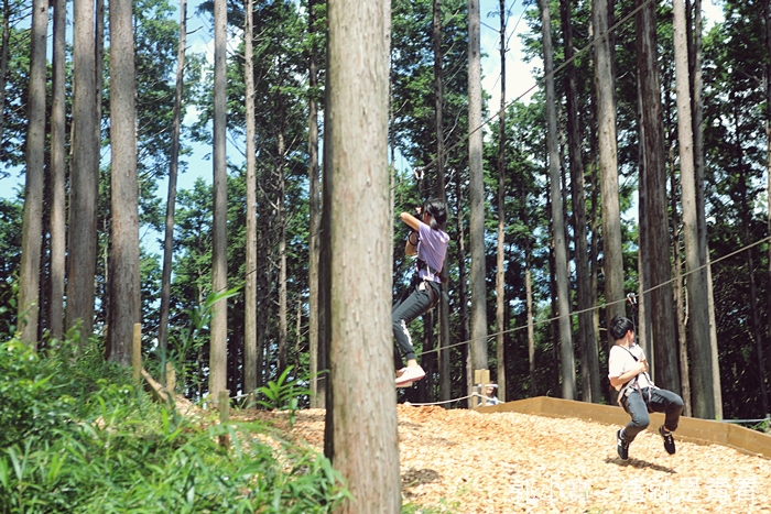 利用森林的特色與高低落差,設計了不同難易度的4條路線,無論大人還小孩都需要靠攀爬、滑行、平衡走來過關斬將,非常考驗體能與專注力的活動,因此特別受到活蹦亂跳孩子們的喜愛。 |