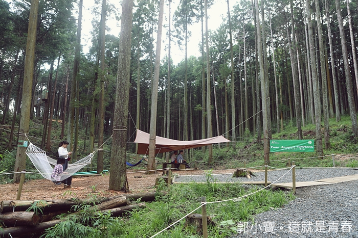 再前往櫃檯的石頭路上還看到有休息區,「Forest Adventure・湯之山」是一家自然共生型的野外公園。