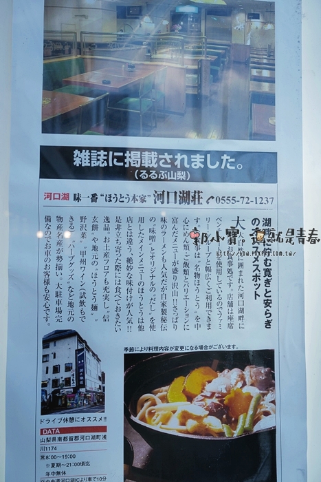 ‧您所在的位置: 郭小寶‧這就是青春 > 國外旅遊 > 日本美食景點輕旅行.桃太郎行程精選 > 『食記美食。山梨河口湖』天上山 河口湖荘|在地名物餺飥麵(ほうとう)|味噌野菜湯頭超美味
