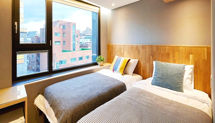 弘大專屬旅舍客房附有必要備品。 為了您的舒適著想,青年旅館的部分客房附有寢具用品、空調和遮光窗簾。 弘大專屬旅舍部分客房有特色設計,如陽台或露台。 部分客房提供冰箱、即溶咖啡、即溶茶、瓶裝水、迷你吧和咖啡機或茶壺,請安心入住。