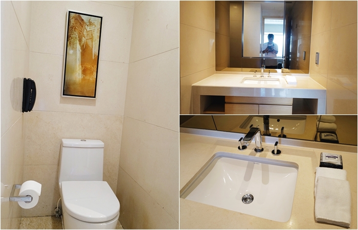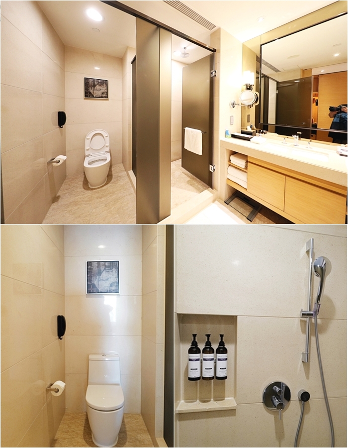 衛浴空間的廁所跟淋浴都是獨立單間,淋浴間有按壓式沐浴用品,現在為了環保幾乎酒店都改這樣的備品,淋浴間的水壓非常大,洗澡非常舒服,水溫也不會忽冷忽熱。 |
