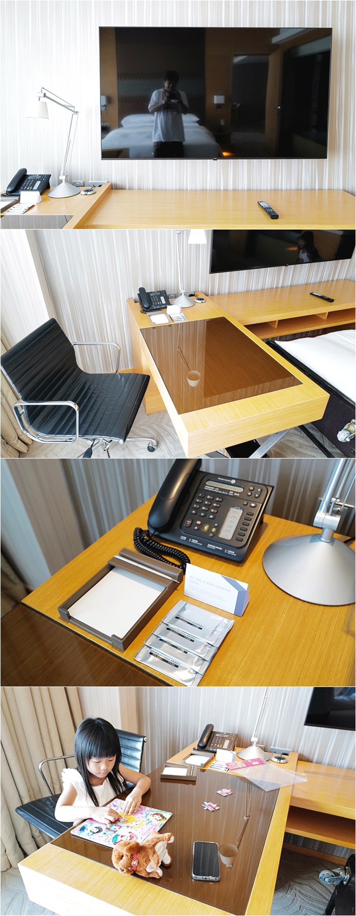 房間內還有一個書桌,連接著電視櫃,書桌也滿大的,放我的筆電還有相機器材跟鏡頭都很足夠。 |