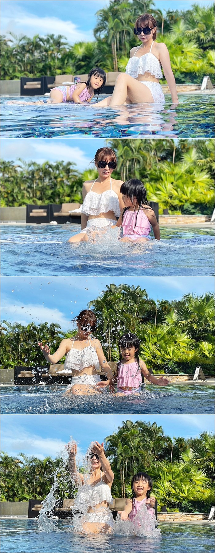 第一天下午母女倆足足玩了好久才願意從泳池離開,泳池旁隨時有兩個救生員照看,雖然有救生員,但是麻煩帶孩子來玩的家長還是眼睛不能離開孩子,自己的孩子麻煩自己好好照顧,看看這畫面,根本不敢想像在香港也有這樣的白海藍天加綠葉泳池。 |