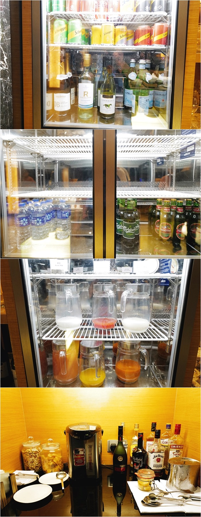 行政酒廊提供的酒水也都是不需要付費,且也可以將飲料跟菜色帶回房間享用,汽水、果汁、酒水應有盡有非常豐富,很多房客都直接將這邊當酒吧就喝了起來XDDD |