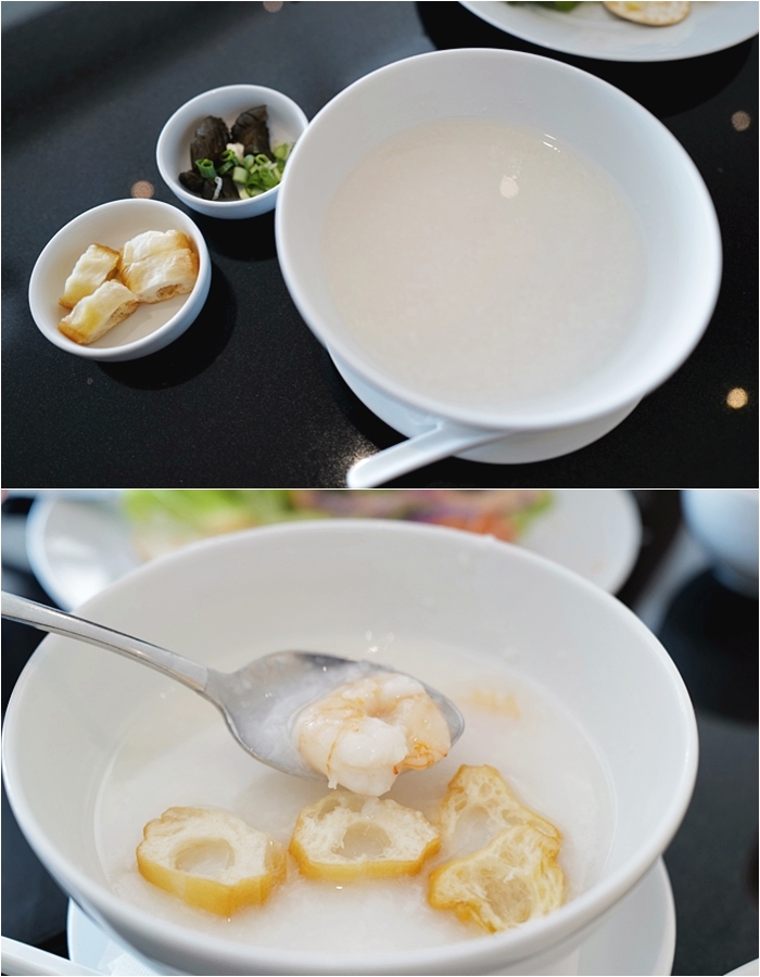 蝦球粥老婆非常喜歡,香港的白粥敖的水分較多,搭配沙拉小菜讓老婆很滿足,他本身就是愛喝粥的人,正合她意。 |