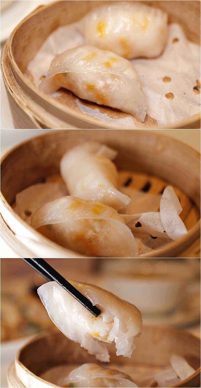 這水晶皮做的相當不錯,內餡的搭配也滿少見的,蟹蛋的口感加上搶味的白帶子還有蝦肉的口感,是個滿衝擊的滋味,在口感的呈現上也很多變化。 |