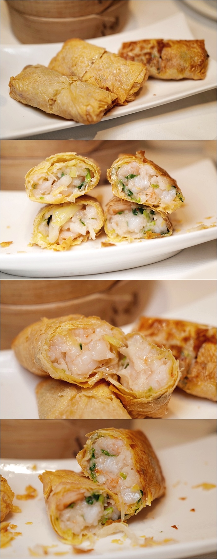 香茜韭菜鮮蝦腐皮卷、蟲草花瑤柱黑毛豬鮮蝦粉卷