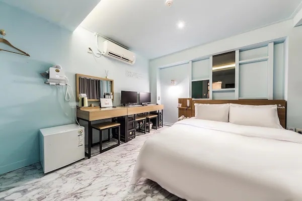 彼得貓酒店新村 - 弘大店客房彷彿家一般舒適。 為了住客著想,汽車旅館的部分客房提供寢具用品和空調。 這間汽車旅館的部分精選房型提供一流的娛樂設施供住客使用,如電視、有線電視和房內影音串流。 這間汽車旅館的部分客房提供住客冰箱、即溶咖啡、瓶裝水和咖啡機或茶壺。