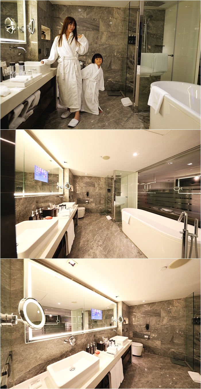 備品應有盡有,也有提供小朋友的牙刷跟沐浴乳,對於小朋友來說非常友善,沐浴鹽也同樣放在檯面上,因為環保的關係,現在全部酒店的沐浴用品都採用罐裝填充式,順帶一提
