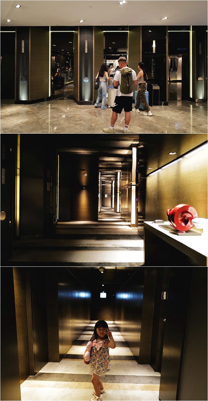 美麗華The Mira Hong Kong 單面有六台高速電梯,電梯行進的速度相當快,不會因為等待電梯而耗費太多時間,樓層走道也走低調奢華風,房務人員都很有活力,看到客人來往都會親切地打招呼並詢問是不是需要補充礦泉水還是打掃。