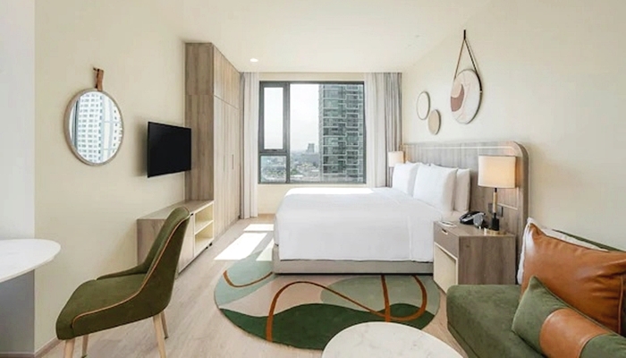 飯店的客房設施現代舒適,每間公寓都配備了高品質的床鋪、免費無線網絡、空調等現代化設施,並提供基本的廚房用具,讓客人可以在房間內自行烹飪,享受家的感覺。