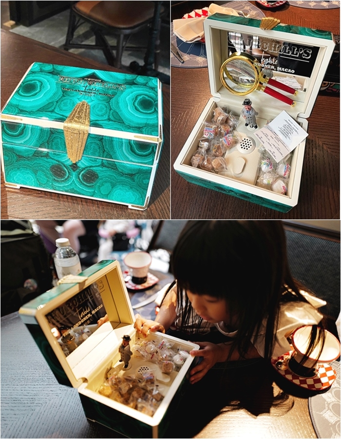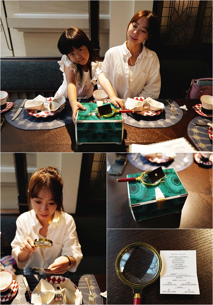 一開始就送來了一個很漂亮的盒子,上面附上了一個放大鏡跟一張小字卡,彷彿就是愛麗絲奇幻仙境下午茶那封遠方寄來的兔子下午茶,需要用放大鏡才可以把字卡的字看清楚。 |