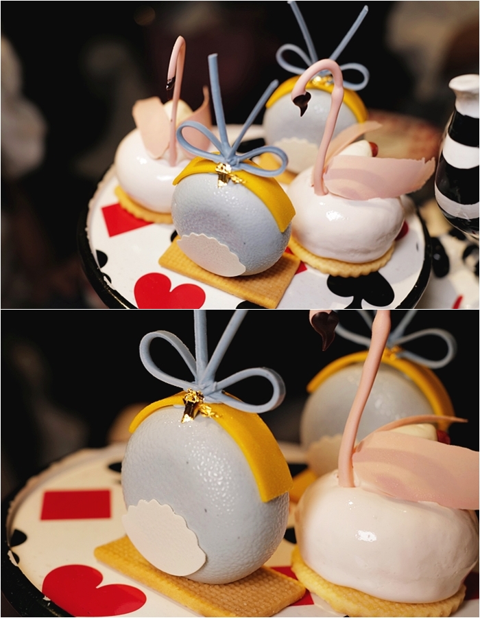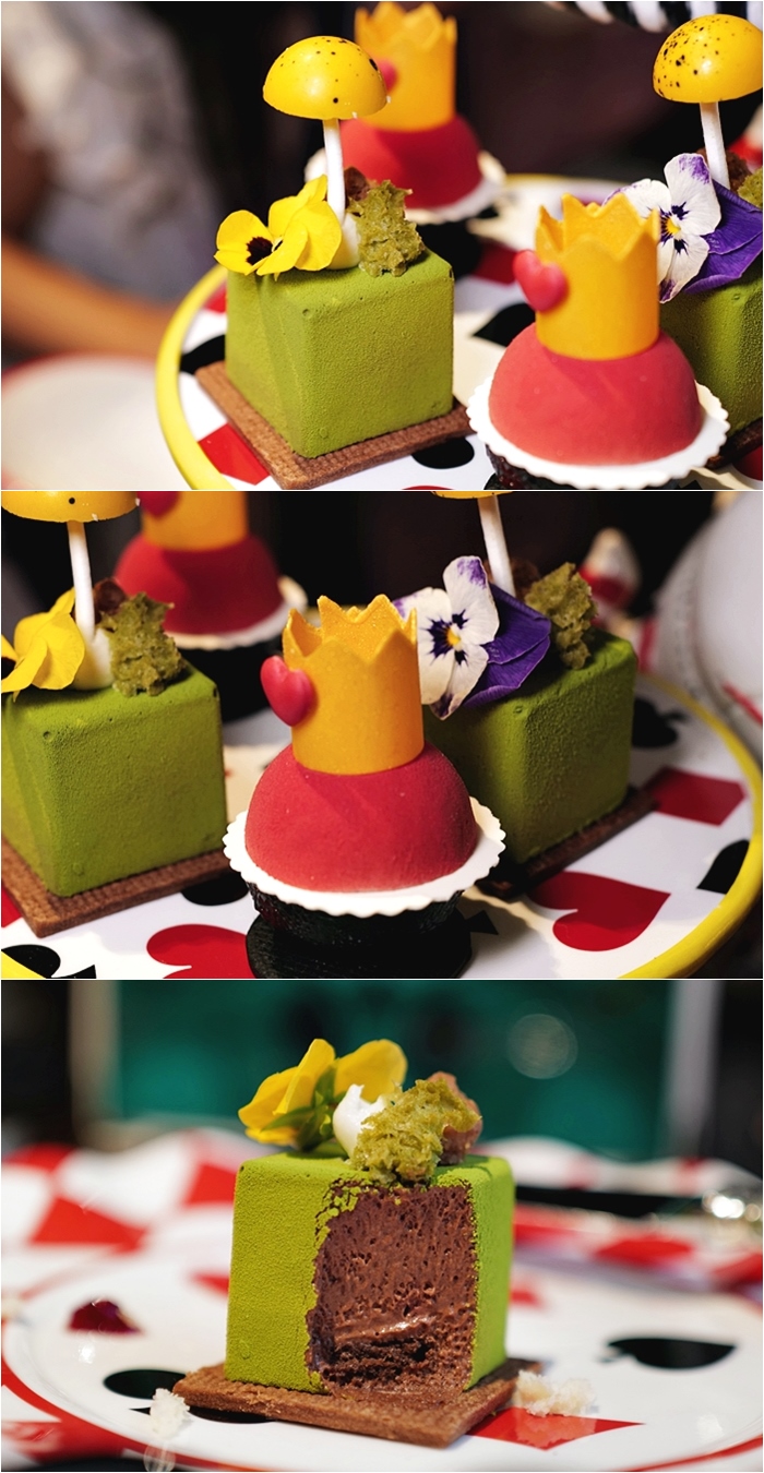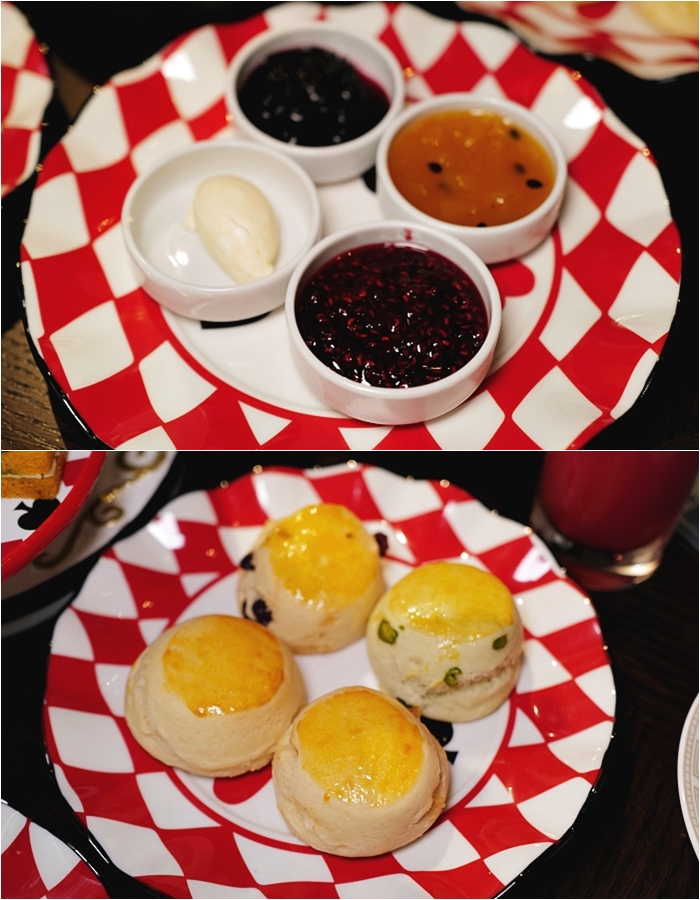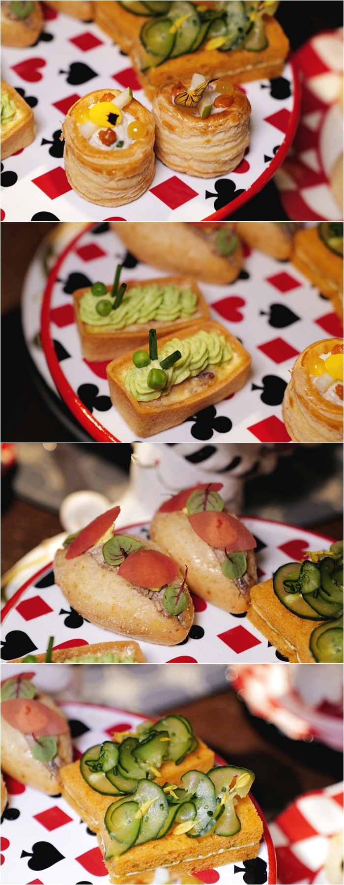 接著等待一陣子,工作人員就會把愛麗絲奇幻仙境下午茶送上桌了,送上來的時候真的還滿壯觀的,很少可以看到這麼主題滿滿的下午茶,不只是名子很愛麗絲,從頭到尾餐盤跟器具、巧思都很愛麗絲,瞬間讓少女心爆棚。 |