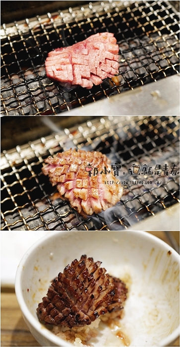 看看這兩塊舌後根的牛舌,厚切在雕花只要2980元真心覺得不貴,放上烤完後油脂一直噴發,烤到一定熟度後就可以起爐,因為太妃厚切牛舌不敢吃太生,所以只能烤熟一點,吃下一口很好吃,外表有點焦脆但是裡面就是軟嫩揪C,真的太迷人! |