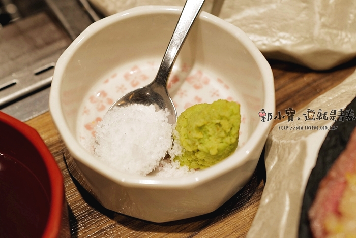 店家還特別送上來新鮮的芥末跟不知到什麼鹽,我個人偏愛夾點芥末在牛肉上,簡直不能再爽了。 |