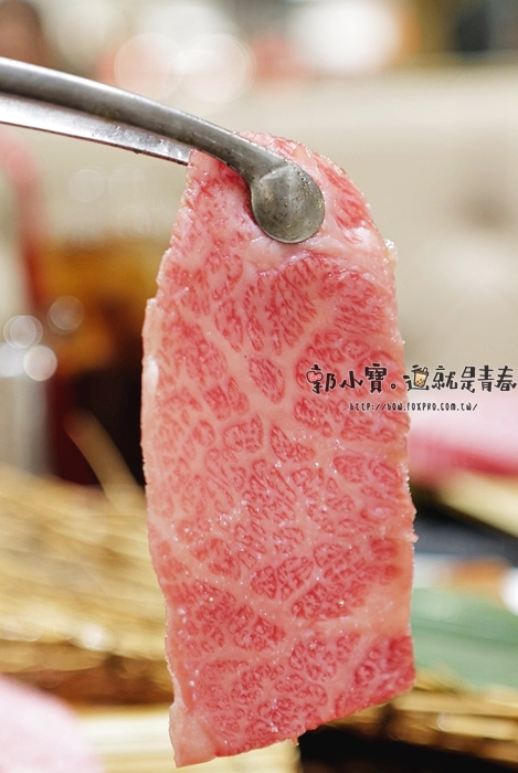 看起來像是里脊肉,油花粗帶細的紋路是大家口中的霜降部位,分布的野很不錯,雖然細紋還不夠多,但是算是很有看頭的了。 |