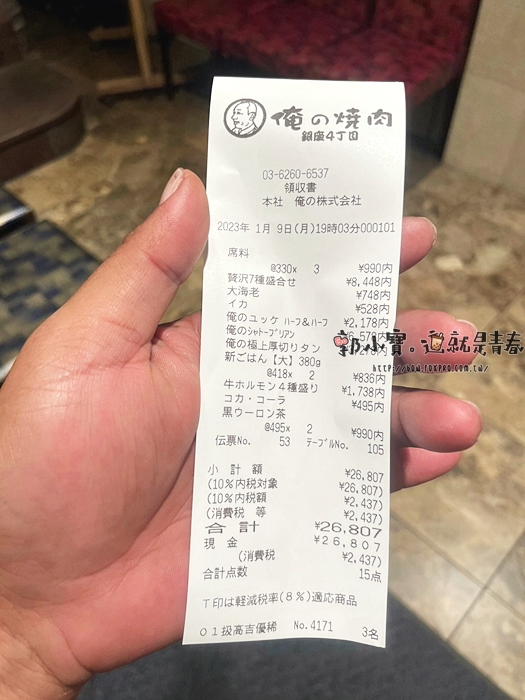 俺的燒肉就坐落在銀座四丁木的十字路口,地點非常好找,雖然是地下室空間,但是一樓店面還是有大大的招牌,可以讓人在路上一眼就認出它。 |