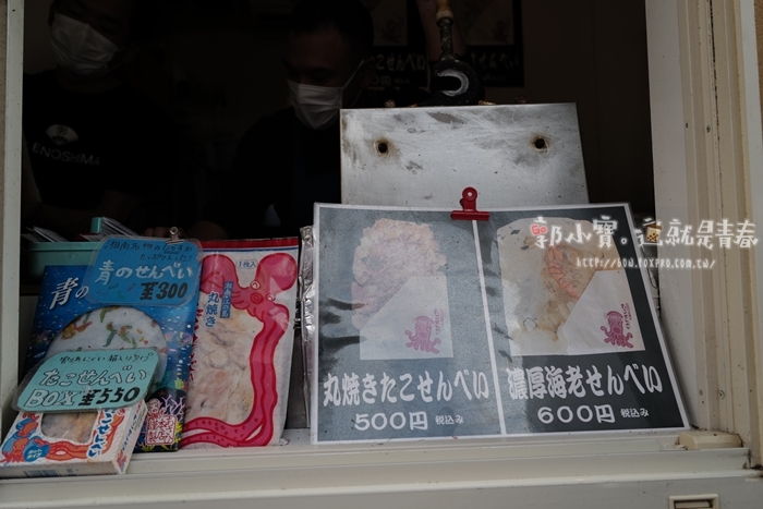 ‧您所在的位置: 郭小寶‧這就是青春 > 國外旅遊 > 日本美食景點輕旅行.桃太郎行程精選 > 『旅遊景點。神奈川藤澤』江之島站前的江島丸燒|一整隻的虎蝦仙、章魚現場製作成海鮮仙貝|朝日堂濃郁海味仙貝