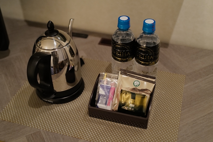使用長嘴電熱水壺非常典雅,另外茶包跟咖啡包應有盡有。 |