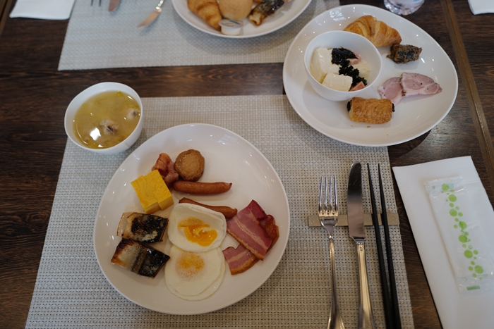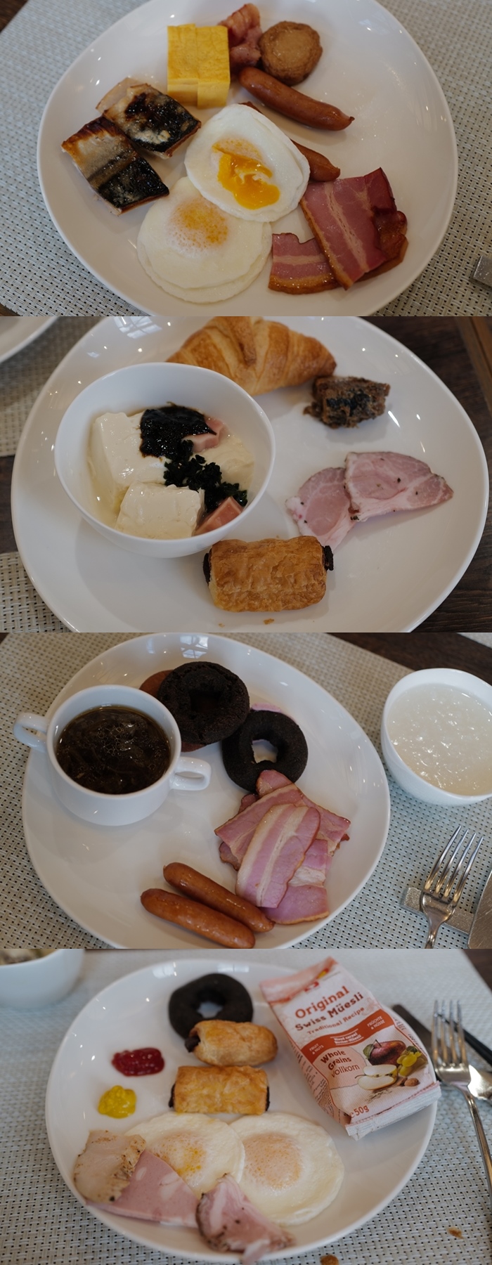 全家一起開心的吃了滿足的早餐,除了日本的米飯跟小菜以外也有提供粥品,另外就是西式麵包跟土司。 |