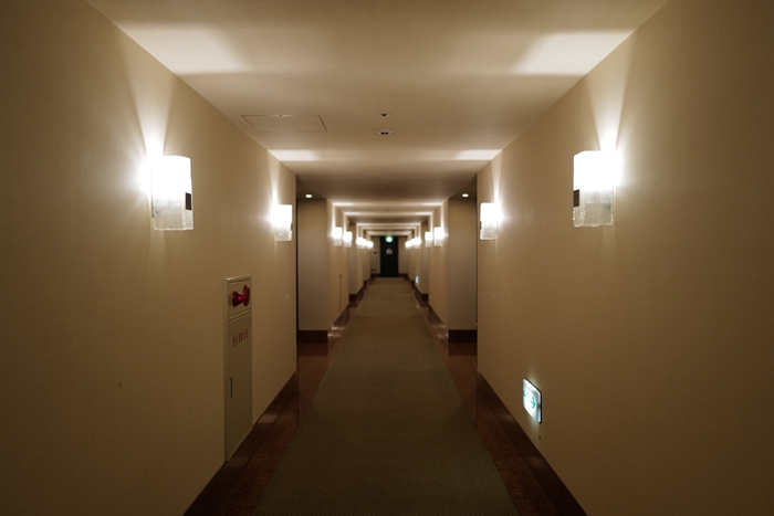 通道很寬敞,且明亮,搭配的是短毛地毯不會讓行李箱不好推。 |