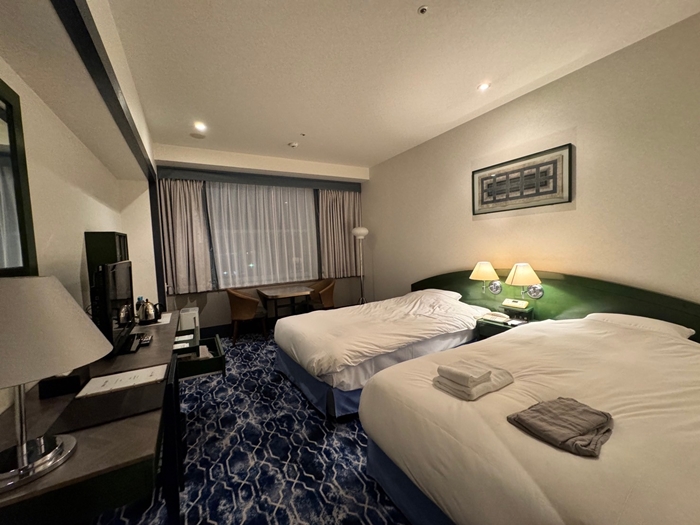 印入眼簾的就是寬敞的空間,這價位真的太便宜了,且一點都看不出來是老飯店,尤其那水藍海浪般的地毯超級美,讓我頗為意外那麼划算的價格可以入住這麼好的飯店。 |