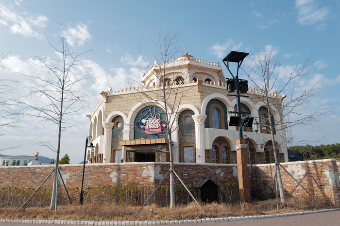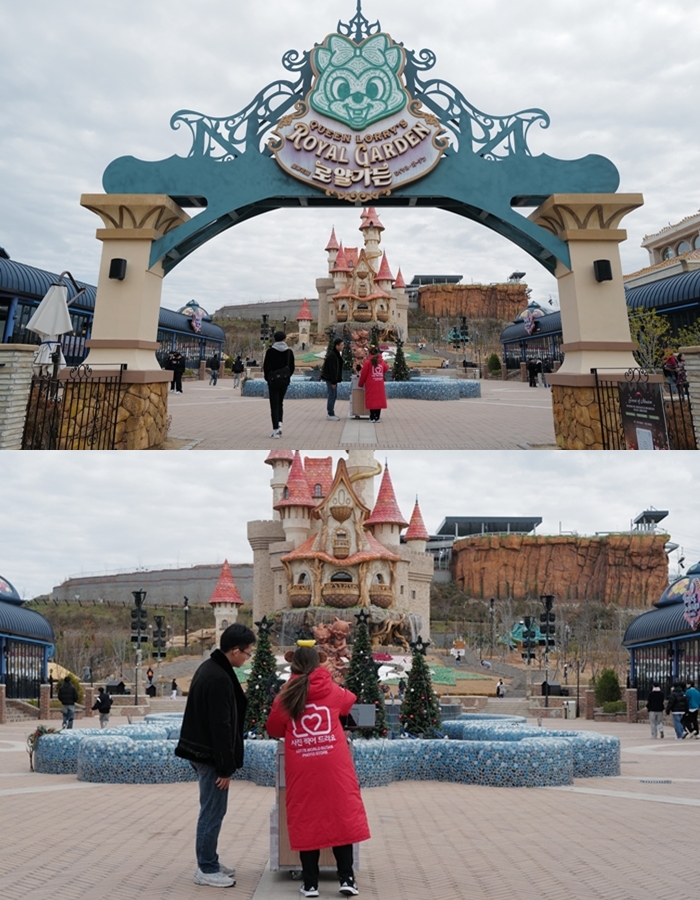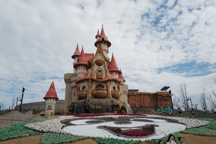 進入遊樂設施大門整體的氣氛營造的還不錯,山丘上的城堡是年輕女孩們最愛的打卡點,這邊也有工作人員販售攝影照片。 |