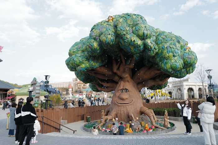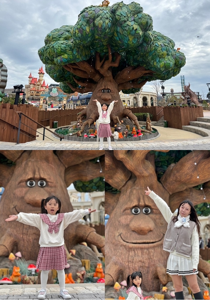 釜山樂天世界最熱門的第一個打卡點就是入口不遠處的這世界樹,不定時還會發生聲音,語言內容是韓文所以我們也聽不懂,另外建議 釜山樂天世界是很多韓國人喜歡穿高中制服來遊玩的景點,你也可以選擇在這邊租借韓國高中校服,但是我們是自己準備學院風的服飾。 |