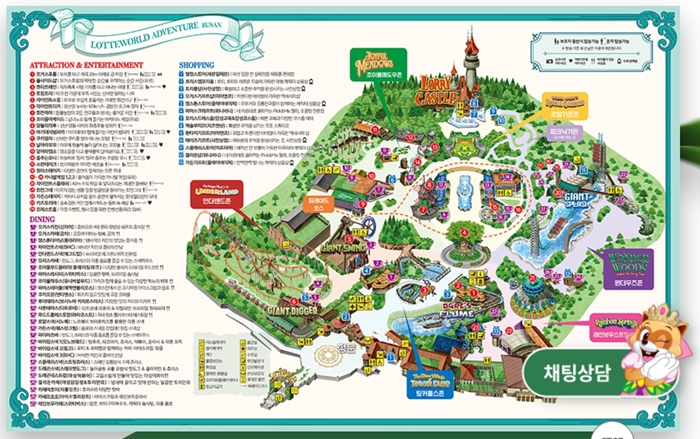 仔細看了一下 釜山樂天世界的電子地圖,其實遊樂場沒有特別大,可能對於迪士尼或是環球影城的刻板印象,但是也足夠玩上一整天了。 |