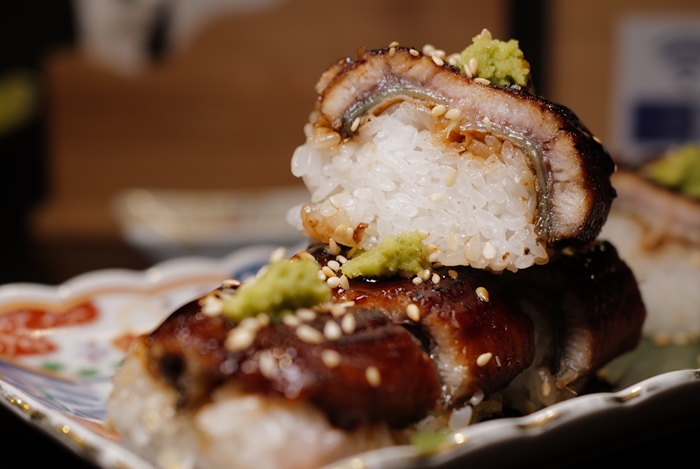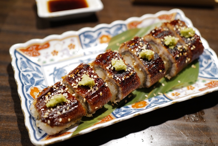 彭有很多推的鰻魚棒壽司,鰻魚看起來應該是台灣鰻魚,因為鰻魚的魚皮較厚,入口咀嚼起來可以吃到魚皮的嚼勁,米粒的黏度也剛剛好,整體來說算是較中規中矩的一道菜,偏台灣味重一點。 |