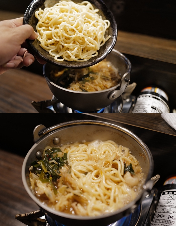 店家特別推薦我點一份強棒麵加入牛腸鍋,這操作我倒是第一次見,在日本還沒遇過可以加麵的,但是這操作卻很符合台灣人的飲食文化,強棒麵是長崎的招牌麵食,加入牛腸鍋內有牛腸;蔬菜等配料,也算是什錦麵了。 |
