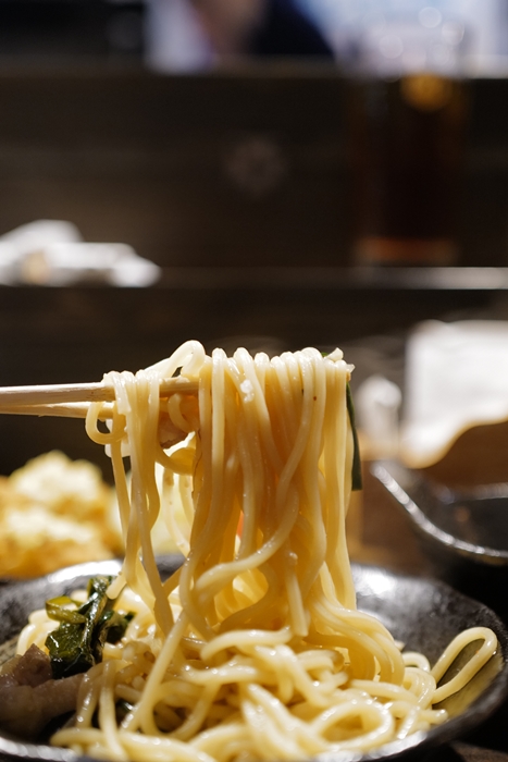 夾起來的瞬間,我終於懂了店家為什麼會推薦我加麵,因為這他媽的也太香了吧,整個牛腸油脂的香氣全部緊緊的巴在麵條上,用聞的就讓人口水直流了。 |