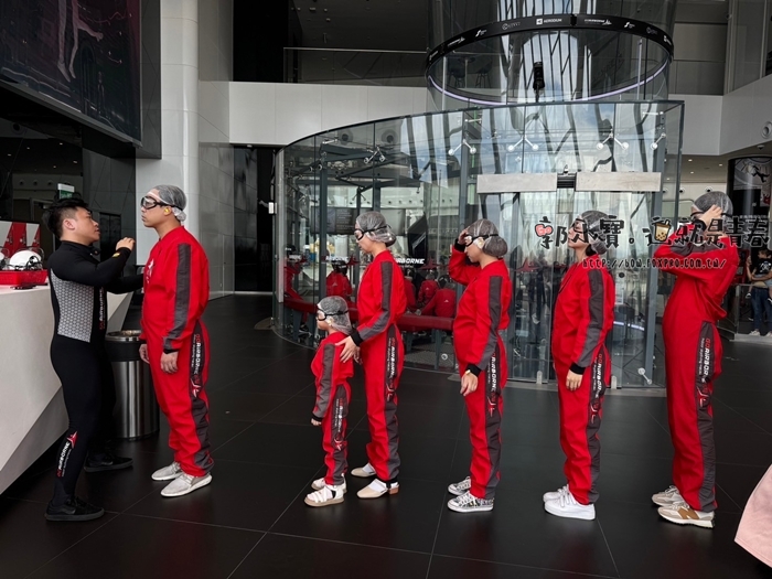 進入場館後並不是馬上去玩室內跳傘,需要觀看影片還有換空飛服及了解遊樂設施的正確姿勢等。 |