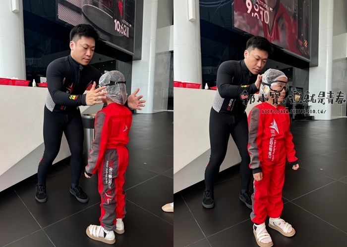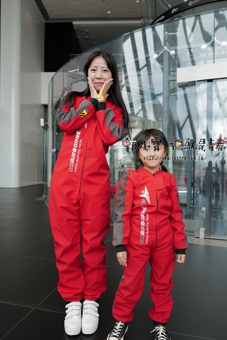 接著教練們就幫我們準備適合我們身材的飛行服,建議大家來玩室內跳傘的時候服裝可以輕鬆簡單為主,飛行服直接套進身上即可,且切記一定要穿布鞋,拖鞋跟高跟鞋會是綁帶鞋都無法遊玩,需要再另外租借鞋子。 |